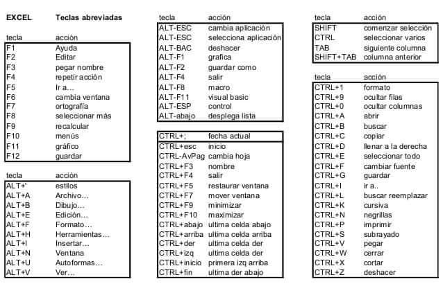 Combinaciones de teclas para diferentes funciones Excel