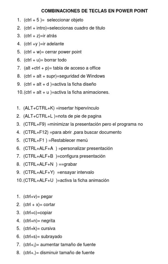 Combinaciones de teclas para diferentes funciones Powerpoint